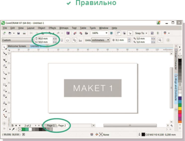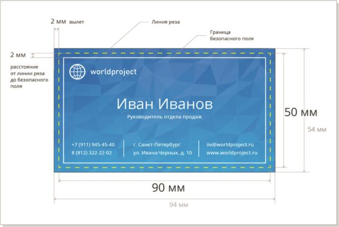 Расстояние от значимых элементов макета (слова, номера телефонов, линии и пр.) до линии реза должно быть не менее 2 мм, иначе элементы могут «зарезаться».