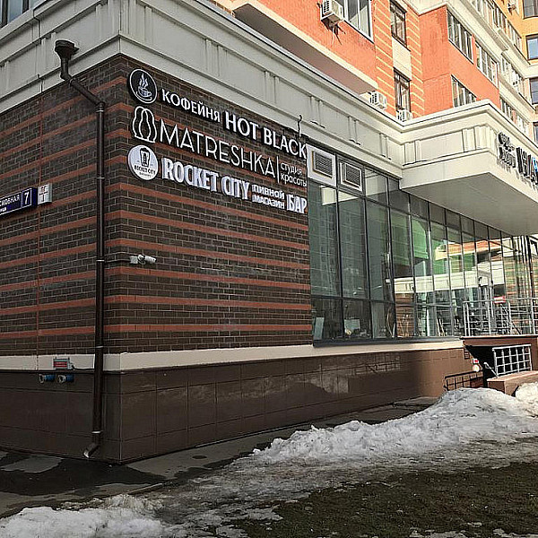 Мы предлагаем два варианта размещения объемных букв: на подрамнике – металлической раме, прочно крепящейся к фасаду, или на подложке – специальной основе из композита и алюминия с негорючей прослойкой. Это дает нам возможность создать вывеску, идеально соответствующую предпочтениям и потребностям заказчика, а также увеличить срок эксплуатации.