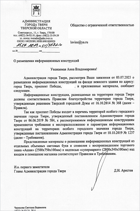 - Если вы размещаете вывеску на здании, дизайн фасада которого оцифрован и согласован с Москомархитектуры, то в дополнительные инстанции можно не обращаться.
