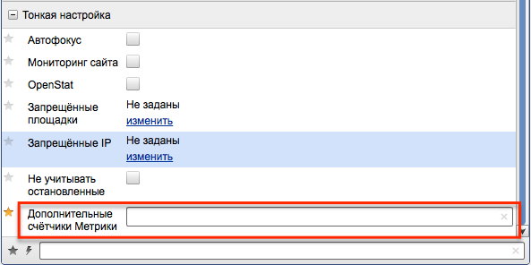 Возможность редактировать дополнительные счетчики Метрики во вкладке «Параметры кампании».
