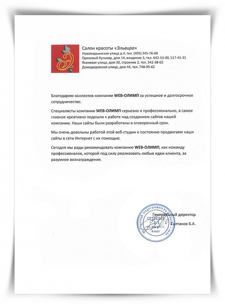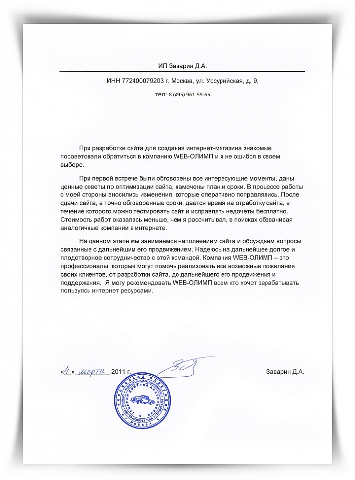 Мы вполне довольны нашим общим сотрудничеством и будем поддерживать старые и разрабатывать новые проекты только с командой профессионалов WEB-ОЛИМП.