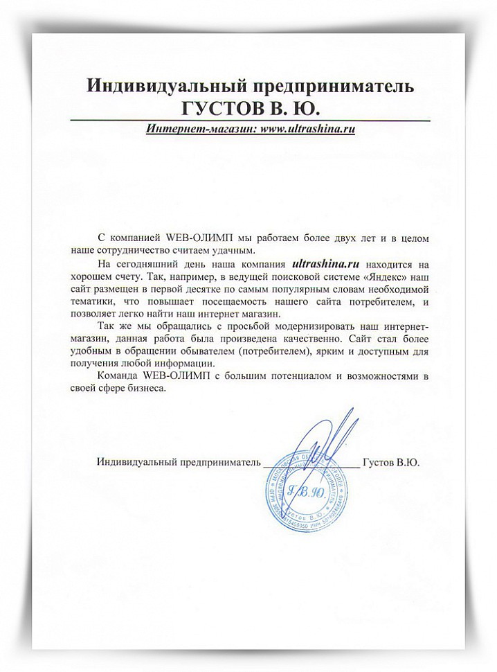 Отзыв от ИП Густов Виталий Юрьевич